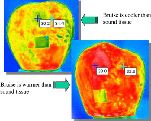 4.紅外熱像儀可以連續(xù)記錄溫度記錄圖,并且可以在傳送帶上進行估算,使用熱成像通過測量干燥期間柑橘類水果的溫度分布來模擬脫水動力學。這可用于確定最終干燥點,也可用于開發(fā)在線控制系統(tǒng)。紅外熱成像可以改善熱量消耗和水果質量控制