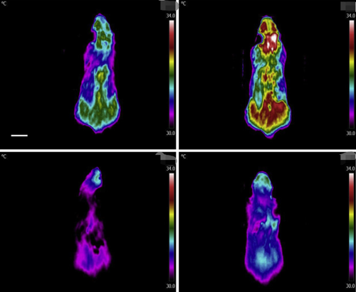 圖為單獨(dú)處理后小鼠的代表性紅外熱圖像
