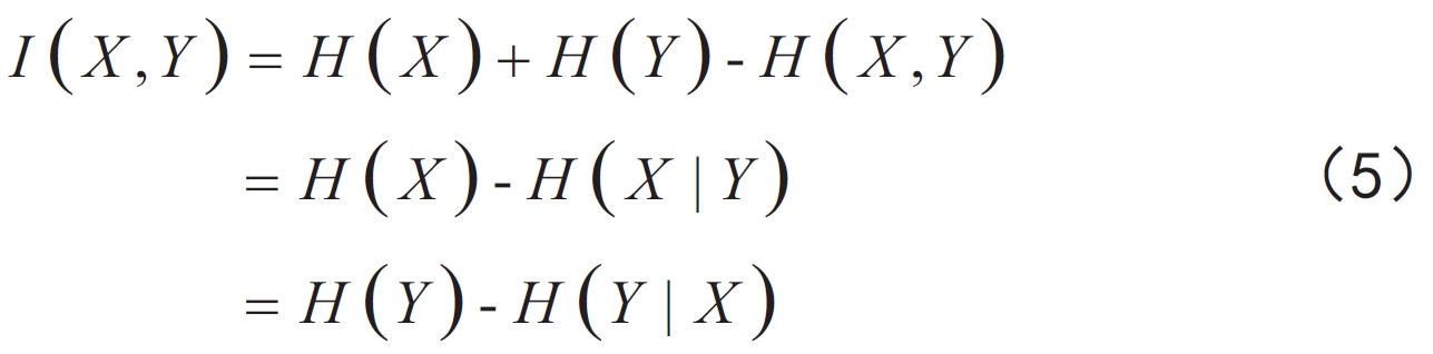 互信息是一種數(shù)學(xué)定義,用來(lái)評(píng)估隨機(jī)變量之間的關(guān)聯(lián)性。它表示兩個(gè)隨機(jī)變量中的共有信息。由信息熵描述的互信息表達(dá)式如下[12]: